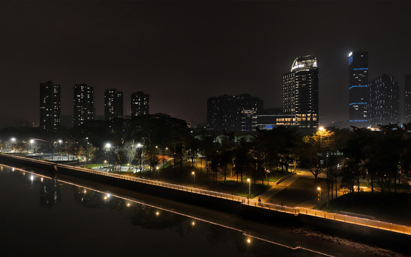 該項(xiàng)目通過(guò)燈光亮化工程打造了兼具美學(xué)價(jià)值與人文內(nèi)涵的濱水公共休閑空間,新增 鳒魚(yú)洲口袋公園 等設(shè)施,成為市民休閑娛樂(lè)的新選擇,進(jìn)一步提升了城市公共空間品質(zhì)。